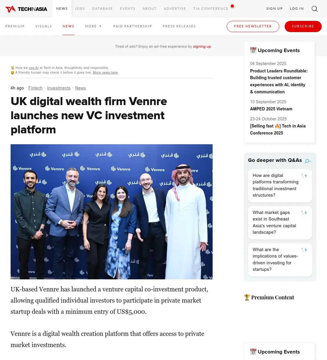 Vennre opens the door to high growth startup deals for qualified individual investors